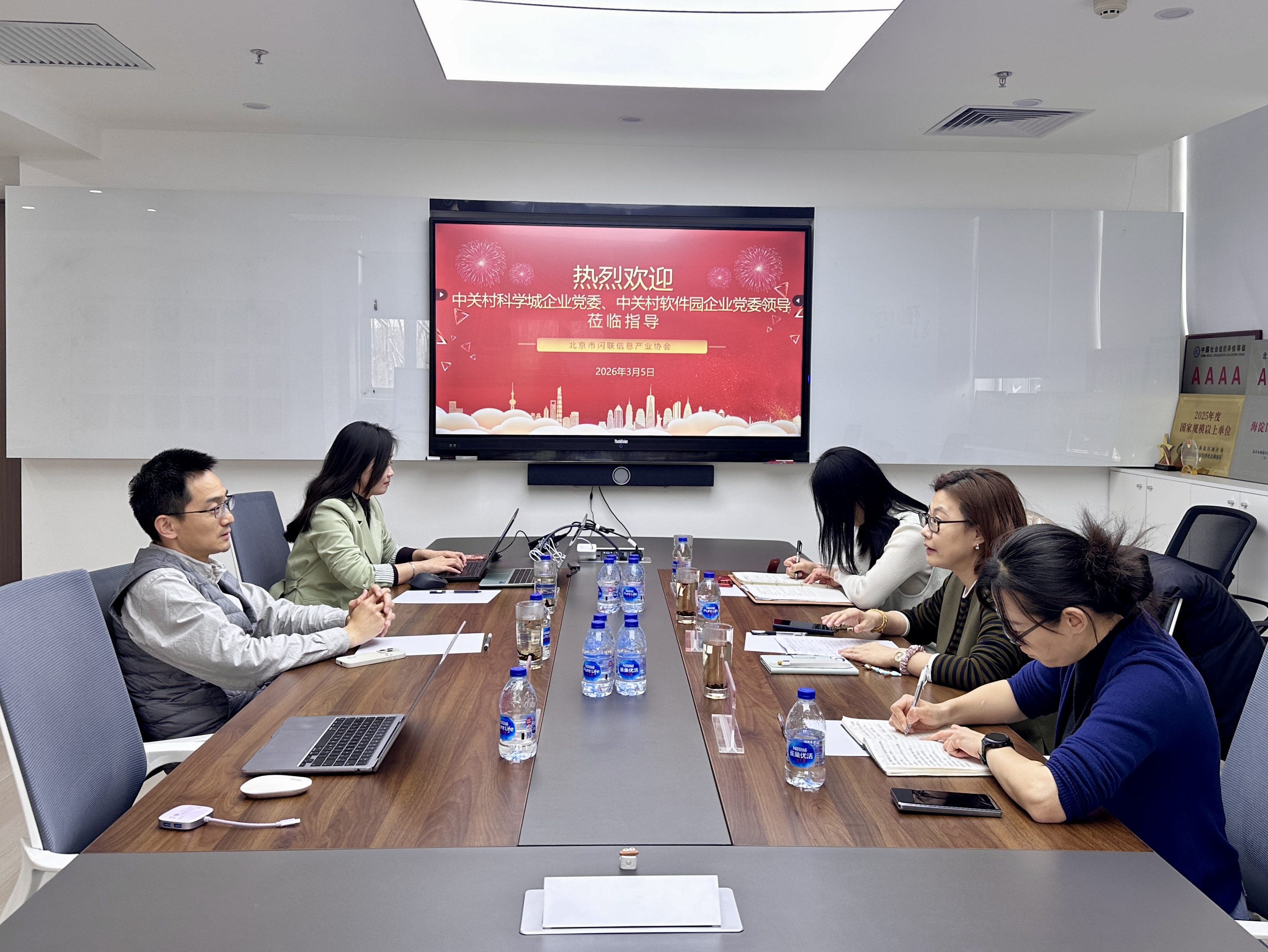 中关村软件园企业党委书记金靖雨等一行到访北京市闪联信息产业协会,开展调研指导工作。