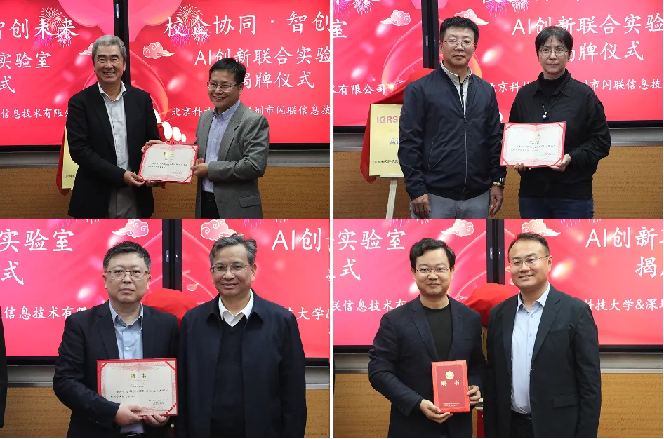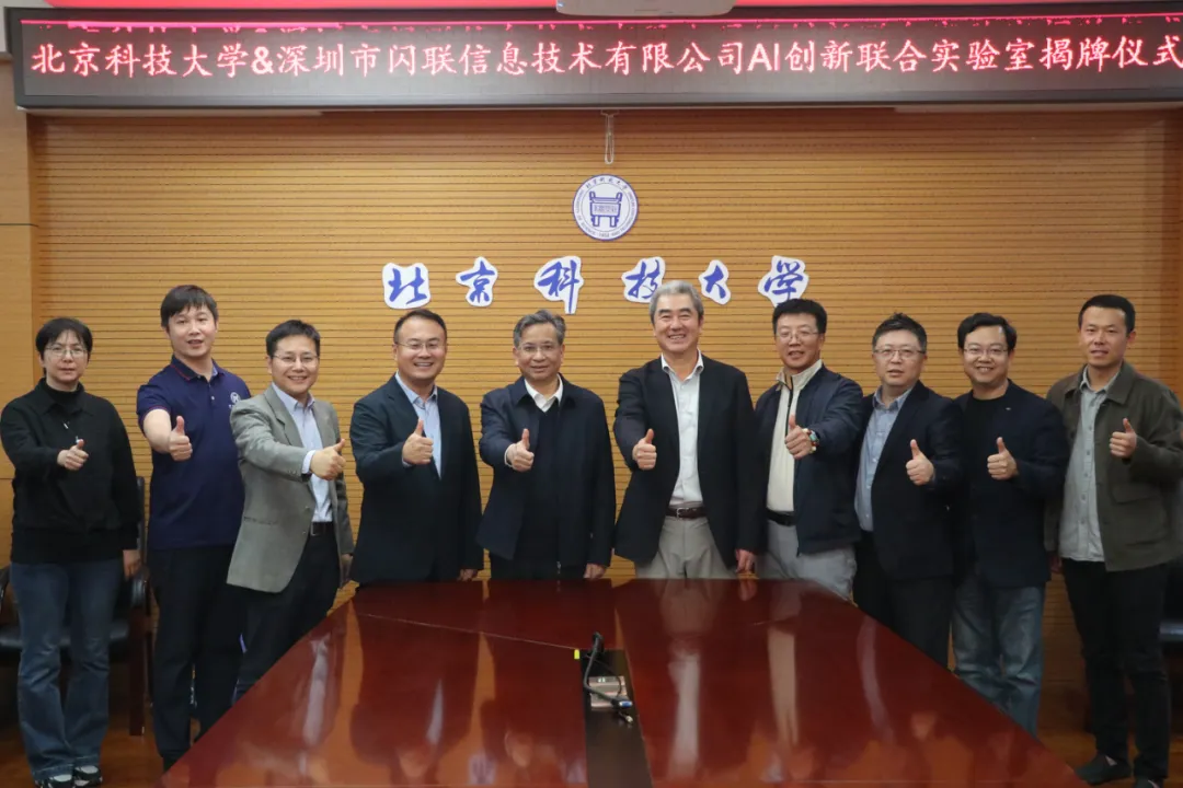 10月16日,一场汇聚产业实践力量与高校科研智慧的合作盛事在北京科技大学举行。深圳市闪联信息技术有限公司(以下简称“闪联”)与北京科技大学(以下简称 “北科大”)合作的“AI 创新联合实验室”揭牌仪式圆满落幕。活动现场氛围热烈,双方核心代表齐聚一堂,共同见证这一标志着校企协同创新迈入新阶段的重要时刻。