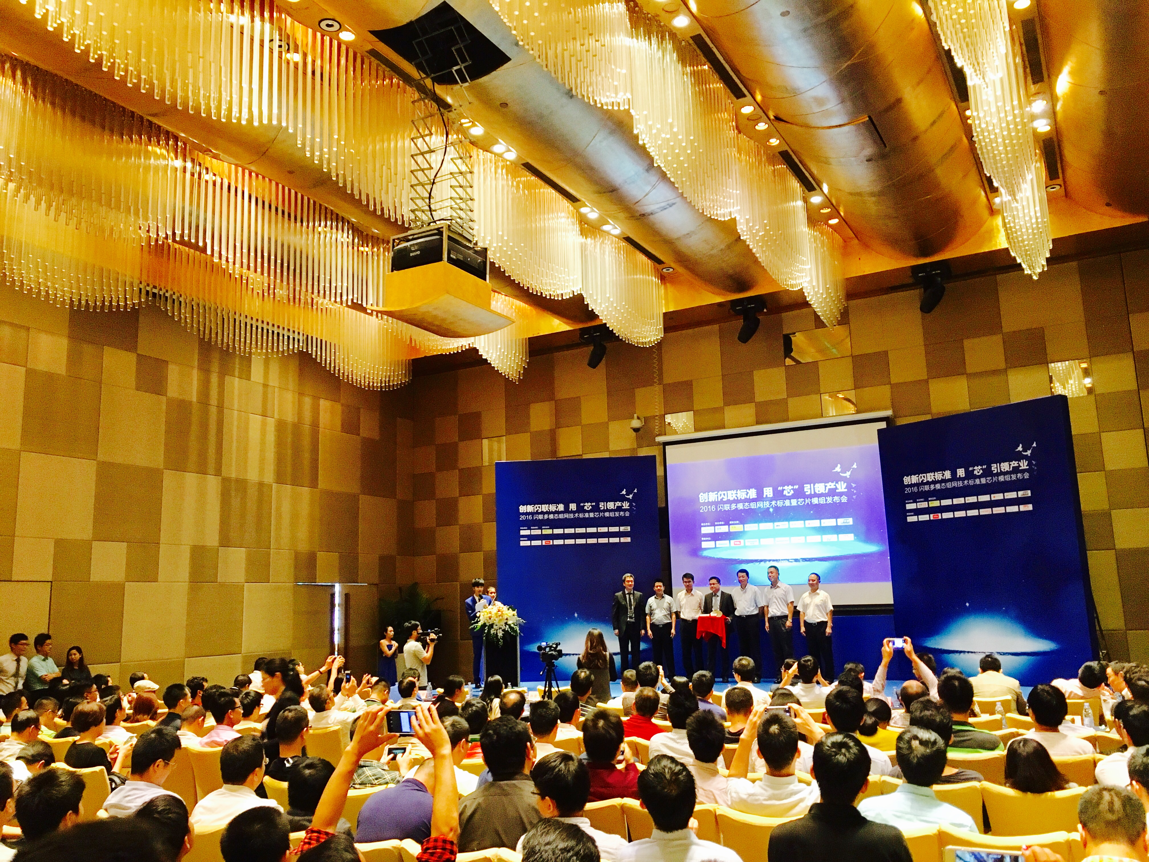 2016年10月20日,在发改委、国标委、工信部、科技部、中关村管委会、深圳市政府等部门的指导支持下,闪联《多模态组网技术标准暨芯片模组发布会》在深圳南山威斯汀酒店成功举办,会上共发布了三项多模态无线组网标准,获得了到场政府领导及业内人士的高度认可。闪联联盟理事长孙育宁、TI副总裁 Kim Wong等出席了本次会议并发表重要演讲。