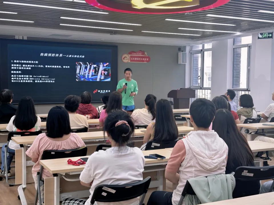 全体参与者合影留念后,专业知识授课环节正式开启。特邀运动教练围绕“科学跑步与损伤预防”主题,从热身流程、姿势矫正、呼吸节奏等实用技巧讲起,结合典型案例详解膝关节保护、运动后恢复等关键知识,现场通过动作示范、一对一纠错等方式,帮助参与者快速掌握科学跑步方法。